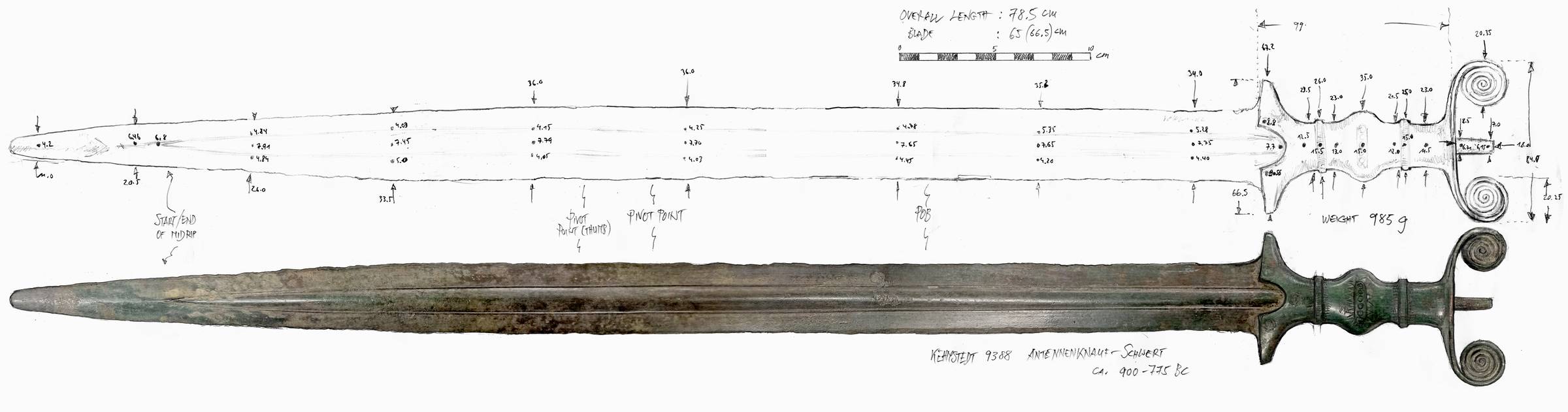 Exploring Prehistoric Fighting ArtsHello fellow fighters and (pre-)history aficionados, This newsletter is all about Bronze Age weaponry — their design, handling, and function. As this email goes out, I am on my journey home from two days of filming at the Museum of Prehistory in Halle, home to the world-famous Nebra sky disc. At the invitation of Professor Harald Meller, I contributed to the museum’s popular and award-winning video library and YouTube channel, sharing my insights into the ergonomics of Bronze Age swords and the principles of historical fighting with shields. Living-history expert Jonas Radtke joined me, providing an impressive array of replica weapons. Jonas, who is also a highly skilled photographer, took additional footage during filming, which we will share with you soon. If you are curious, feel free to browse Jonas’ website — it features outstanding photography from his Past Identities series and from a recent bestseller on Germanic tribes. To give one of his shields a more striking appearance, I painted it using natural pigments bound with egg yolk. The decoration is based on contemporary motifs found on Bronze Age swords and jewellery. The shield shape follows surviving bronze sheet shields of the Nipperwiese type, characterised by concentric ridges standing proud of the surface — much like the iron fittings on certain late-medieval bucklers. Bronze shields varied considerably in size: some were as small as bucklers, while others — such as the Herzsprung type — measured over 70 cm across. The one shown in the photo is of medium size. Bronze nails on wooden shield boards are confirmed by finds from three graves. If Bronze Age shields interest you, I wholeheartedly recommend Marion Uckelmann’s outstanding publication on the subject. It is an essential resource even if German is not your strong suit, as the book includes photographs of all c. 100 surviving shields, along with all relevant measurements and weights. One of the swords featured in the museum filming is a perfectly preserved late Bronze Age example of a distinctive shape akin to the Möringen type. I demonstrate its handling qualities in this video recorded at the museum in January. It premiered on my Patreon. Special thanks to all my supporters — your backing genuinely makes a difference. Another bronze weapon in the museum’s collection that I documented is a wonderful antenna sword. You can now purchase a 300 dpi scan of my full-size illustration, complete with detailed stats, via my sword shop on Patreon — or buy directly here: