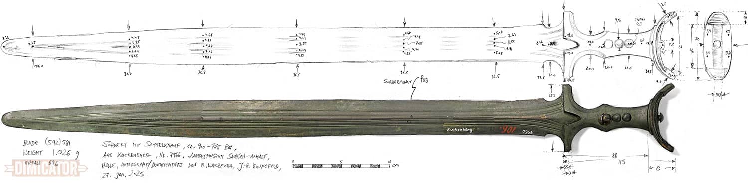 Studying Originals, Recreating HistoryHello archaeology aficionados, The ingenious design and ergonomics of these weapons never cease to amaze me. Thanks to the courtesy of Professor Harald Meller and Dr Jan-Heinrich Bunnefeld, I had the opportunity to examine several bronze swords at the State Museum of Prehistory in Halle, home of the world-famous Nebra Sky Disc. I am delighted to share a video showing the handling qualities of a particular Late Bronze Age sword. The example featured in this video (with English subtitles!) comes from a hoard find near Kuckenburg in Saxony-Anhalt. It is a variant of the so-called Tachlovice swords, related to the Mörigen type, dating to around 900–740 BC. The video premiered on my Patreon. Or watch on my YT channel. You can also purchase a scan of my full-size illustration of this wonderful bronze sword in my shop on Patreon. Virtual Reconstruction of the Marsleben HelmetIn a previous newsletter, I shared information about a remarkable 14th-century kettle hat and presented my illustrations of what it might have looked like in its heyday. I subsequently created additional images — six illustrations in total. Oliver Wünsch and I used these as keyframes to create an AI-assisted animation based on my original artwork. Producing the video required roughly 85 hours of work for a 25-second clip, so we hope you will enjoy the result. You can watch the video
